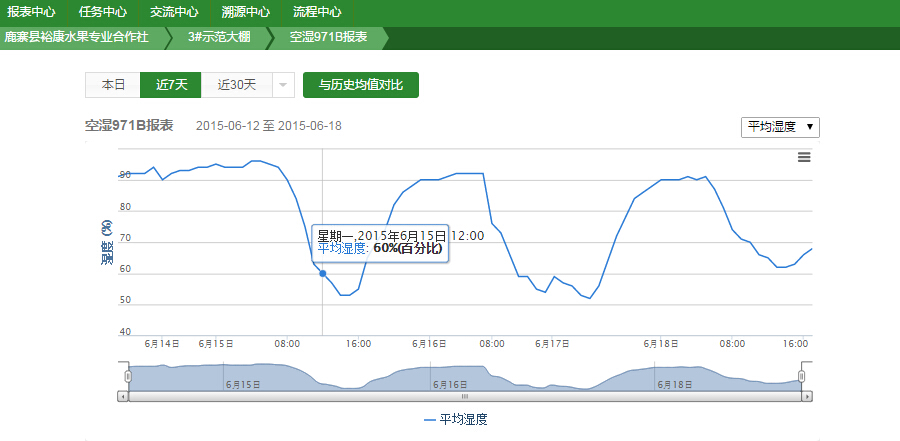 濕度對葡萄種植的影響也非常大,比如,葡萄園的空氣濕度連續(xù)一周都超過80%,就需要注意葡萄是否會發(fā)生灰霉病等疾病。而天潤智力智能農(nóng)業(yè)監(jiān)控系統(tǒng)能夠?qū)崟r監(jiān)測空氣濕度,如果監(jiān)測到葡萄園連續(xù)一周的空氣濕度超過80%,就會給葡萄管理員發(fā)送預(yù)警,提醒他們注意預(yù)防灰霉病等疾病。