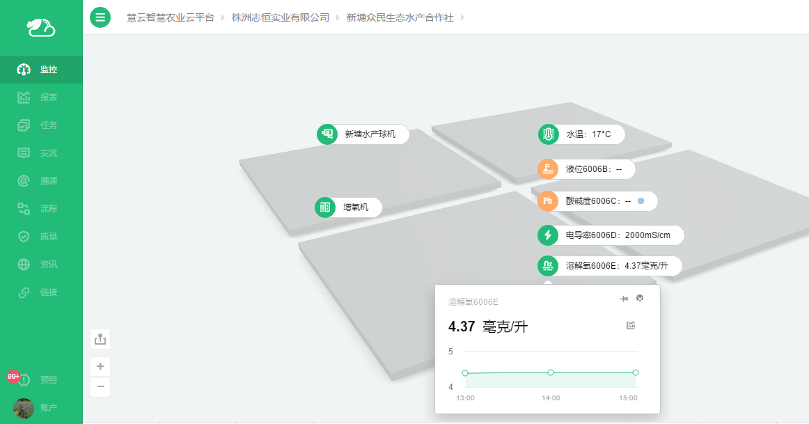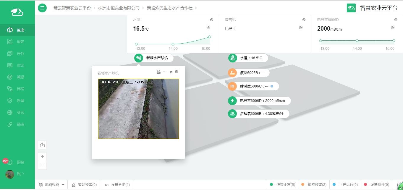 當(dāng)傳統(tǒng)的魚塘遇見了農(nóng)業(yè)物聯(lián)網(wǎng),魚塘就“活了起來”,一切都變得智能化。眾民合作社的養(yǎng)殖戶開始采用天潤智力的“水產(chǎn)養(yǎng)殖智能監(jiān)控系統(tǒng)”,在魚塘里安裝智能監(jiān)控設(shè)備,養(yǎng)殖戶們?cè)诩抑锌赏ㄟ^電腦了解魚塘的情況,不僅能實(shí)時(shí)采集魚塘的水溫、溶氧量、酸堿度等關(guān)鍵數(shù)據(jù),還能看到實(shí)時(shí)視頻,時(shí)刻關(guān)注魚塘變化情況,大大提升了養(yǎng)殖效率。