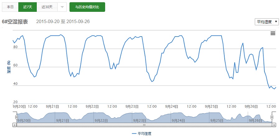 實時監(jiān)測的環(huán)境情況數據每隔10秒鐘就上傳到“天潤智力智慧農業(yè)云平臺”,工作人員只要登錄手機APP或者在電腦上,就可以遠程隨時隨地查看大棚的各項關鍵數據。工作人員可以在云平臺中對相關傳感設備進行預警設置,如當溫度超過設定值時,傳感器圖標將會由綠色變?yōu)辄S色,表示預警狀態(tài),并向管理員手機發(fā)送預警消息,提示相關人員。