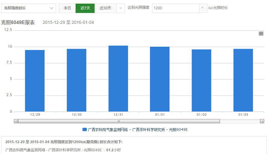 利用空氣溫度傳感器、空氣濕度傳感器、光照度、降雨量等傳感設(shè)備實時監(jiān)測茶葉種植的環(huán)境。實時監(jiān)測的環(huán)境情況數(shù)據(jù)每隔10秒鐘就上傳到“天潤智力智慧農(nóng)業(yè)云平臺”,茶葉所研究人員只要登錄手機APP或者在電腦上,就可以遠程隨時隨地查看茶葉種植園區(qū)的各項關(guān)鍵數(shù)據(jù)。所采集的數(shù)據(jù)實時上傳到天潤智力智慧農(nóng)業(yè)云平臺,并快速進行統(tǒng)計分析,解決了科研人員對數(shù)據(jù)的采集分析需求,并確保了數(shù)據(jù)采集的精準、快速、全面。