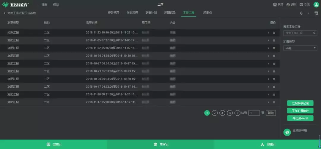 如今,五大村的蜜瓜基地在五谷耘立方標(biāo)準(zhǔn)化生產(chǎn)系統(tǒng)的管理下,井然有序地進(jìn)行著各項(xiàng)生產(chǎn)任務(wù),基層工作人員每天都會(huì)收到系統(tǒng)自動(dòng)派發(fā)的農(nóng)事任務(wù)流程,以及基地管理員派發(fā)的臨時(shí)工作任務(wù),并且每完成一項(xiàng)任務(wù),工作人員在系統(tǒng)上直接匯報(bào),基地管理員在系統(tǒng)中可以實(shí)時(shí)查看工作完成情況,及時(shí)掌握農(nóng)事進(jìn)度。