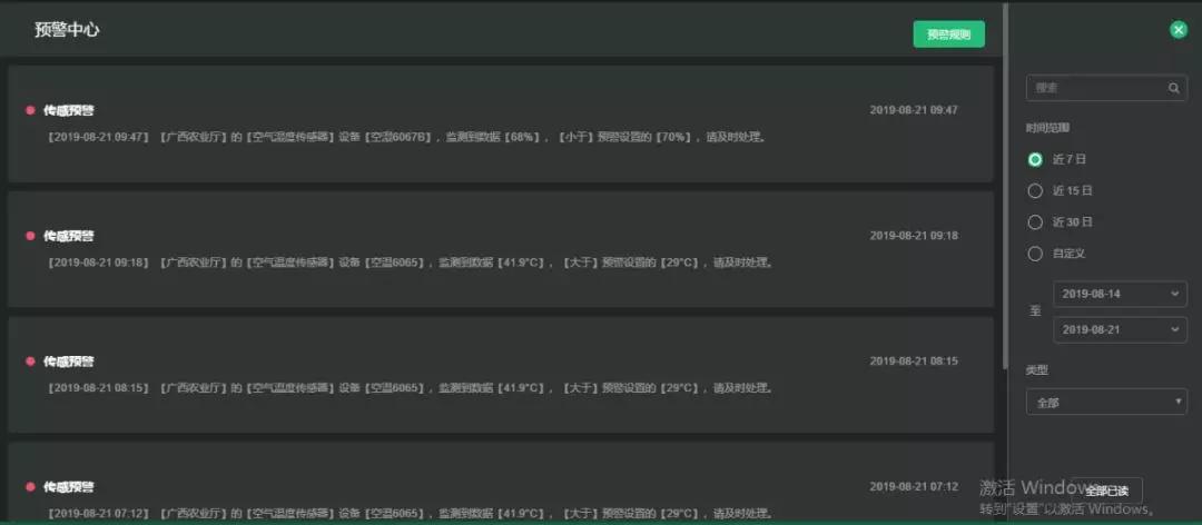 △五谷耘立方系統(tǒng)截圖-傳感器預(yù)警記錄
