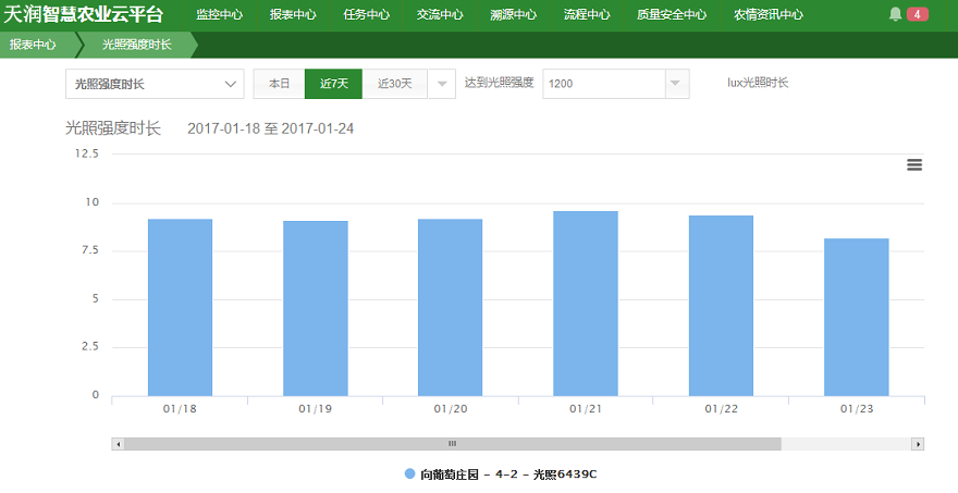 “安全、優(yōu)質(zhì)”是向葡萄秉承的生產(chǎn)理念。葡萄屬于精細(xì)作物,生產(chǎn)過(guò)程中對(duì)溫度、水分、光照都有嚴(yán)格的要求。溫度增長(zhǎng)過(guò)快可能導(dǎo)致花期受精不良;水分過(guò)多,就會(huì)提高葡萄霜霉病、灰霉病的發(fā)病率;光照過(guò)強(qiáng)則會(huì)造成灼傷,因此在葡萄的生產(chǎn)過(guò)程中,需要投入大量的人力進(jìn)行監(jiān)督管理。但即便是投入了人力,人工操作的隨意性特點(diǎn),也難以保證操作的實(shí)時(shí)性,極易造成葡萄品質(zhì)的不穩(wěn)定。為了穩(wěn)定和提高葡萄的品質(zhì),向葡萄同時(shí)引進(jìn)了天潤(rùn)智力智慧農(nóng)業(yè)監(jiān)控系統(tǒng),啟動(dòng)葡萄園的智能化生產(chǎn)。