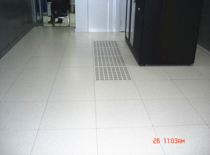 ( 1)地板采用高強(qiáng)度的抗靜電地板,它拆卸靈活、互換性能好,能提供靜壓風(fēng)庫,抗御靜電荷等優(yōu)點,可用于任何管線敷設(shè)集中,防止靜電產(chǎn)生的場所。 防止和消除機(jī)房的靜電積沉,是保證計算機(jī)安全可靠運(yùn)行和消除操作人員安全心理障礙的主要技術(shù)之一,防靜電活動地板是實現(xiàn)這種技術(shù)的有效設(shè)施。2)因機(jī)房在精密空調(diào)的作用下處于恒溫恒濕的狀態(tài)下,鋪20mmPE防火保溫板有效地防止地板下結(jié)露現(xiàn)象的產(chǎn)生。 3)為防止止機(jī)房內(nèi)精密空調(diào)漏水事故,特要求增設(shè)防水墻一道及地漏,并在其四周鋪設(shè)漏水感應(yīng)設(shè)備能夠及時的發(fā)現(xiàn)水患的存在并避免水患的擴(kuò)大。)