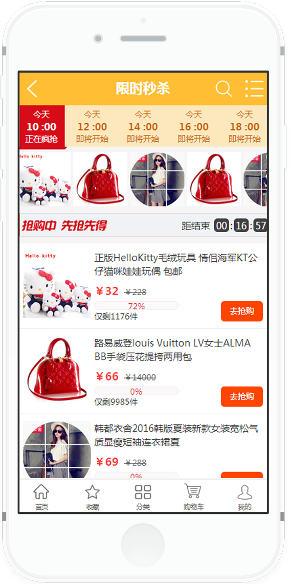 商家開設秒殺欄目,每個商品限制購買N件,商家提前設置商品,體現(xiàn)在前臺,商品開始進行倒計時,倒計時結(jié)束,商品開售,開售時間多少分鐘或者多少秒,由商家設置,例如A產(chǎn)品商家設置倒計時24小時,前臺開始倒計時,早上十點開售,10點1分25秒結(jié)束,10點-10點1分25秒期間搶到的顧客也要在這個時間段進行付款,沒有付款成功算失敗。