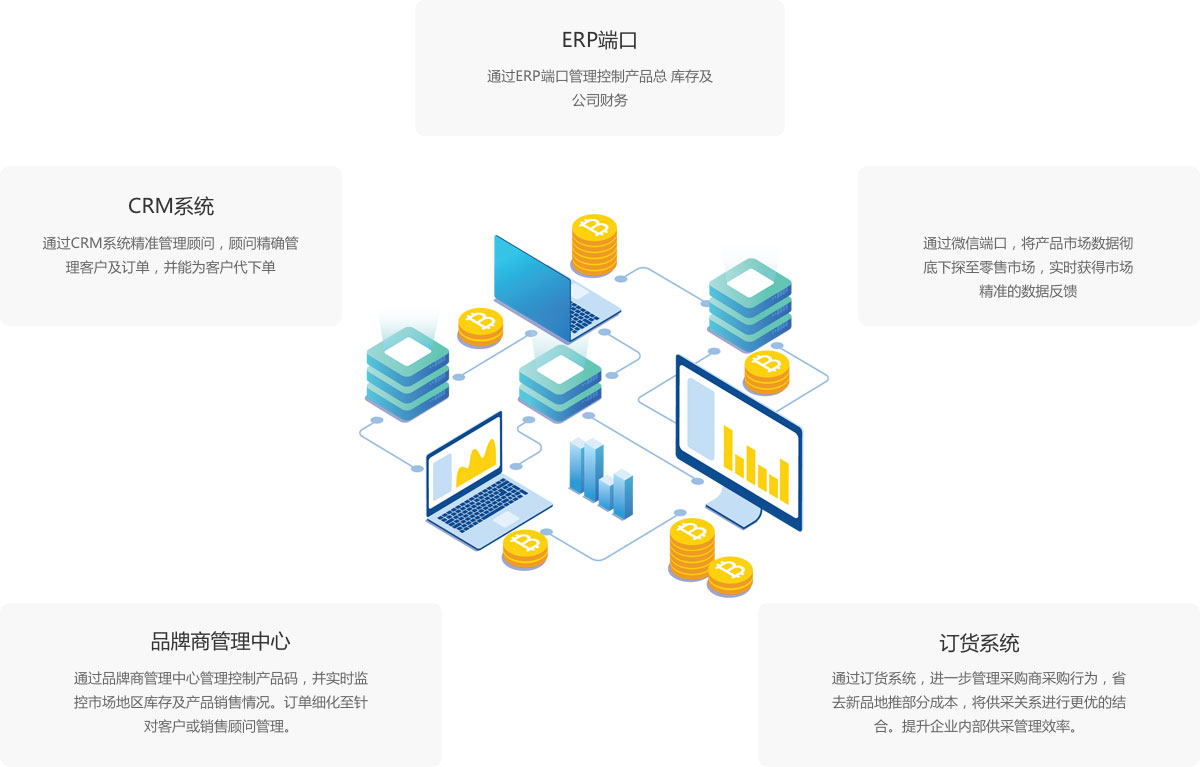 可打通公眾號、小程序、APP、H5等端口,靈活布控市場。