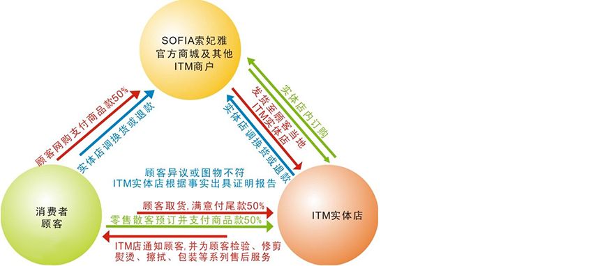 該模式的經(jīng)營(yíng)難度較大,企業(yè)須具備“二元經(jīng)營(yíng)思維”的戰(zhàn)略理念,因此,目前國(guó)內(nèi)僅青島本土品牌索妃雅一支獨(dú)大。ITM戰(zhàn)略認(rèn)為,當(dāng)前的商業(yè)競(jìng)爭(zhēng)不再是同業(yè)的產(chǎn)品、服務(wù)、品牌等層面的競(jìng)爭(zhēng),而是信息化時(shí)代的變革推進(jìn)之爭(zhēng),步入信息化時(shí)代的未來(lái)企業(yè)要面對(duì)“雙線競(jìng)爭(zhēng)”即“線上與線下”兩大戰(zhàn)略層面。因此,在ITM戰(zhàn)略格局中,將線上經(jīng)營(yíng)者認(rèn)證為ITM商戶,將實(shí)體店轉(zhuǎn)型升級(jí)為ITM服務(wù)店,使兩者的商品、價(jià)格、服務(wù)、溝通和信息同步運(yùn)行。如,所有B2B、B2C、C2C等經(jīng)營(yíng)者認(rèn)證ITM商戶后,其在線上銷售的商品發(fā)貨至顧客指定的ITM服務(wù)店,服務(wù)店根據(jù)商戶線上承諾為商品進(jìn)行檢驗(yàn)、修整、熨燙、擦拭,重新包裝及出具《ITM證明報(bào)告》等一系列售前、售中服務(wù)。