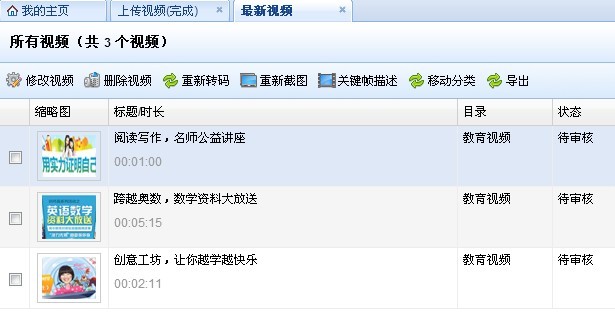 在“最新視頻”右上角,視頻云提供“視頻搜索”功能,可以根據(jù)視頻名稱關(guān)鍵字進行檢索已上傳的視頻。