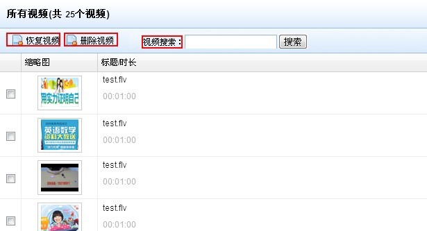 ①恢復(fù)視頻:把刪除的視頻恢復(fù)到“最新視頻”列表里,不用再次轉(zhuǎn)碼。