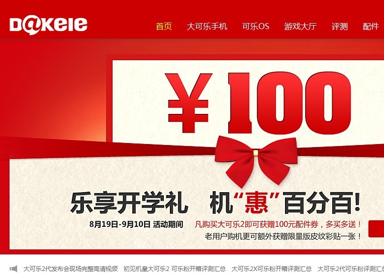 大可樂(lè)(Dakele)手機(jī)是北京云辰科技有限公司最新發(fā)布的新款大屏幕智能手機(jī)。公司是一家以互聯(lián)網(wǎng)手機(jī)和移動(dòng)互聯(lián)網(wǎng)為方向的技術(shù)型創(chuàng)業(yè)公司,以在手機(jī)上實(shí)現(xiàn)極致互聯(lián)網(wǎng)體驗(yàn)為目標(biāo),做真正的互聯(lián)網(wǎng)智能手機(jī)。2012年9月27日大可樂(lè)官方網(wǎng)站正式上線。11月5日正式...