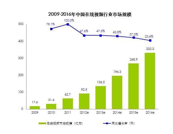 在國內(nèi),據(jù)iUserTracker監(jiān)測數(shù)據(jù)顯示,在線視頻在2012年第二季度已經(jīng)超越搜索服務(wù)和社區(qū)交友,成為中國用戶規(guī)模最大的網(wǎng)絡(luò)服務(wù),2012年5月用戶規(guī)模達到4.2億。艾瑞的分析報告指出,2012年視頻行業(yè)整體市場規(guī)模達到92.5億元,同比2011年增長了47.6%,而且未來還會以30%以上的速度繼續(xù)增長。