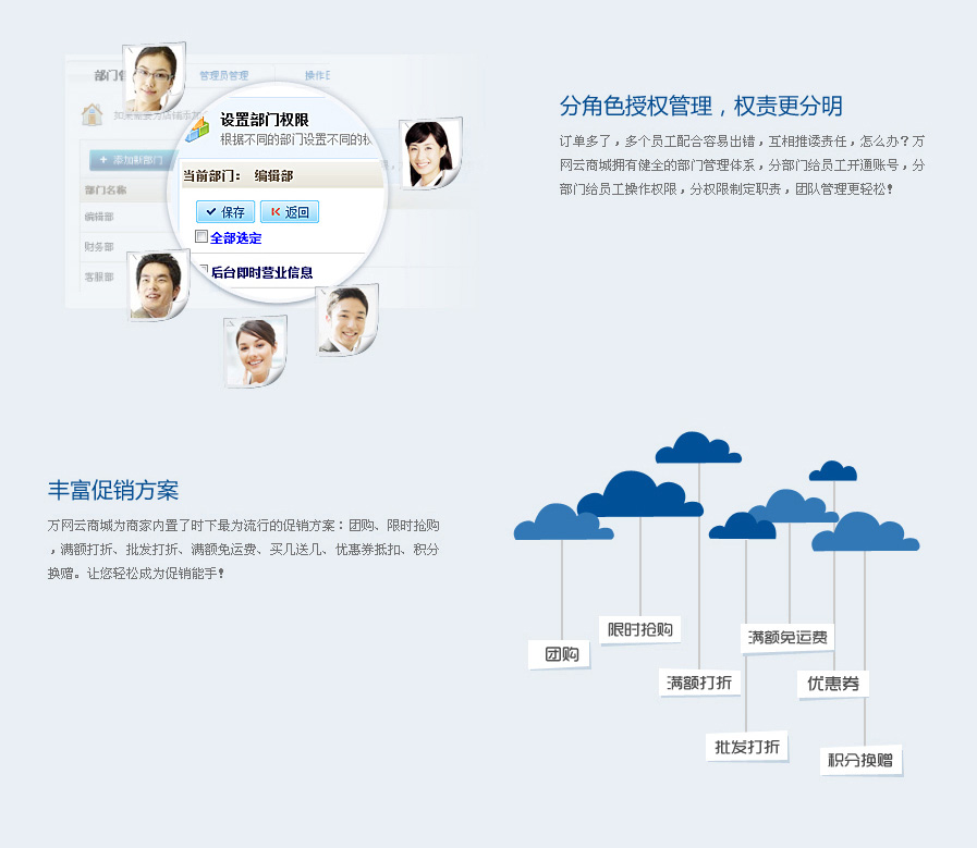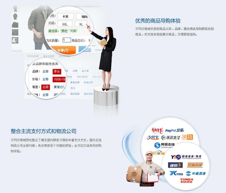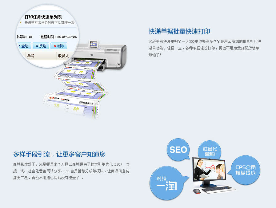 • 整合多種支付與物流接口,提供各類營銷組件及全面的SEO解決方案,后臺管理方便易用